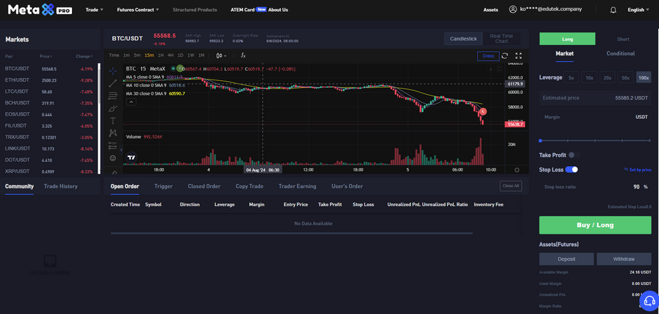 ※In MetaxPro, you can choose leverage between 5x and 100x based on your margin.