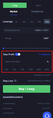 - Take Profit (TP): You can set a target price for taking profits before entering the trade.