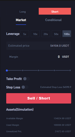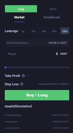 - Leverage: You can select leverage based on your margin (5x, 10x, 20x, 50x, 100x).