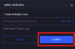 ⑤ Click “Get code” when the authentication code input screen is displayed.