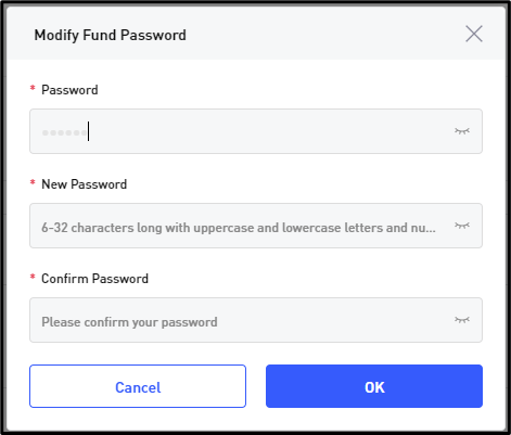 ④ Set a transaction password and click ‘’OK’’ (6-32 characters including upper and lower case letters and numbers).