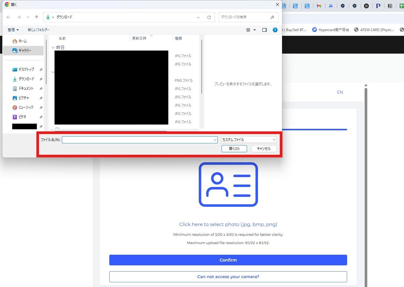 7. Click within the red box to upload a photo (upload a photo of the front side).