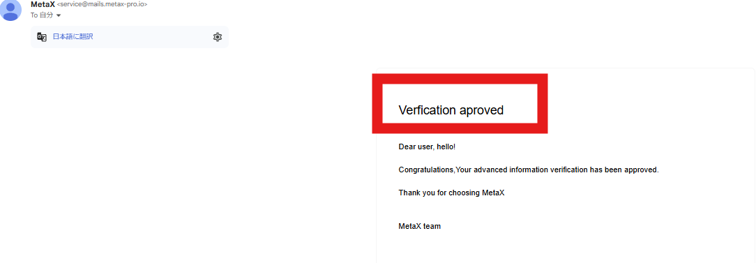 8. If the result is “Approved” or “Rejected”, you will receive an email to the email address of the account where you logged in (when you registered for identity verification) (or a short message if you registered your cell phone number).