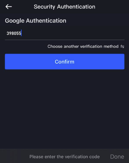 Enter the 6-digit verification code displayed in the app into the “Google Authentication” field.
