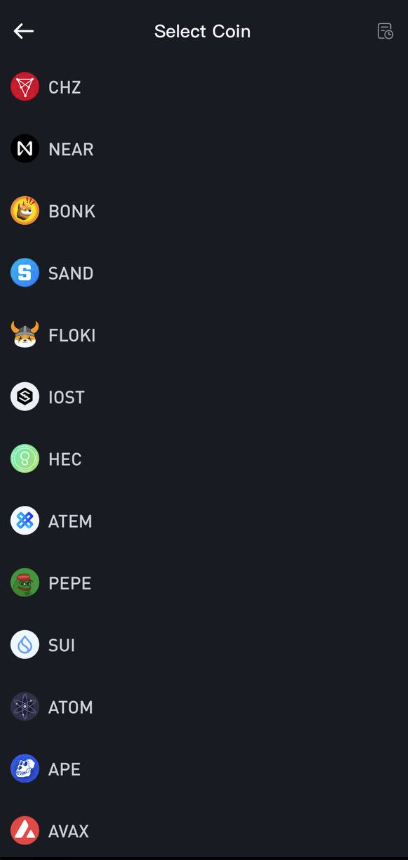 ⑥Select the coin you would like to transfer.