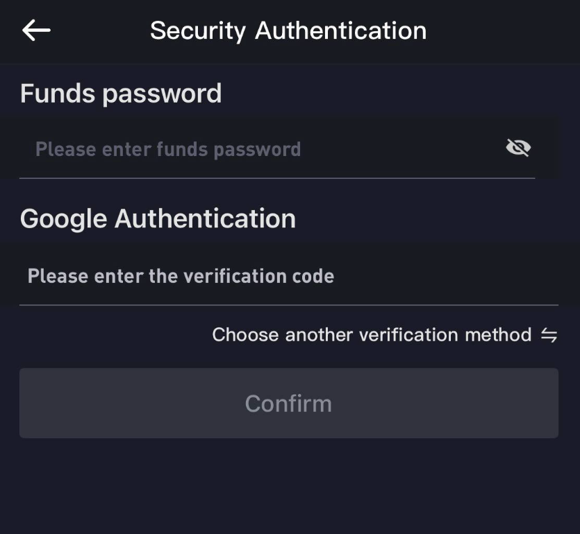 Enter your Funds Password in the “Funds password” field.